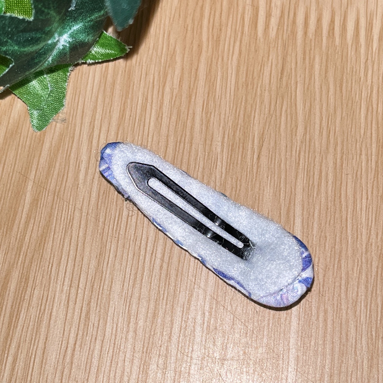 美しい青い花柄のリバティ生地を使用した、プチプラで可愛いヘアピンです。