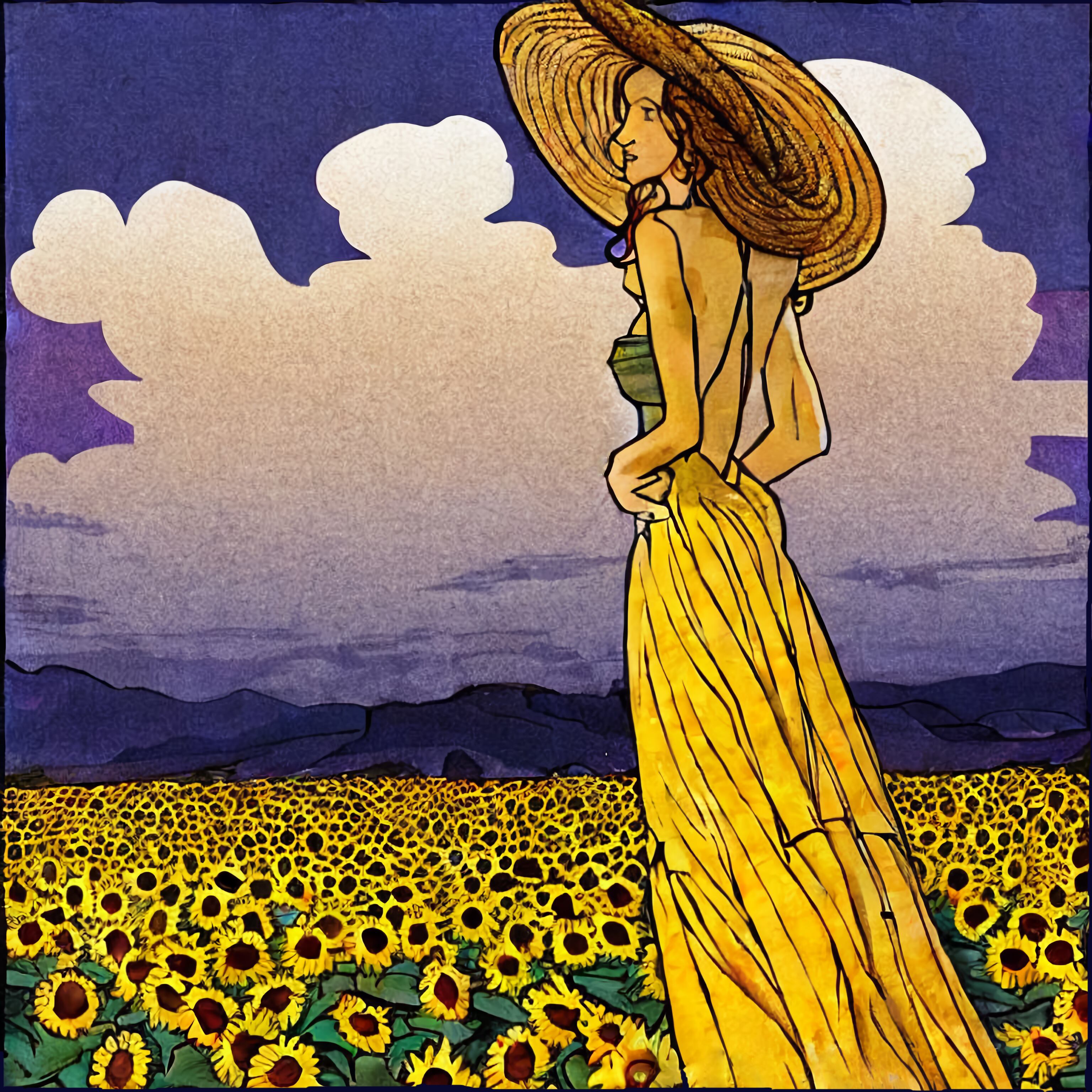 強い太陽の下でも元気いっぱいに咲き誇るひまわりをモチーフにした「向日葵の咲く丘にて」