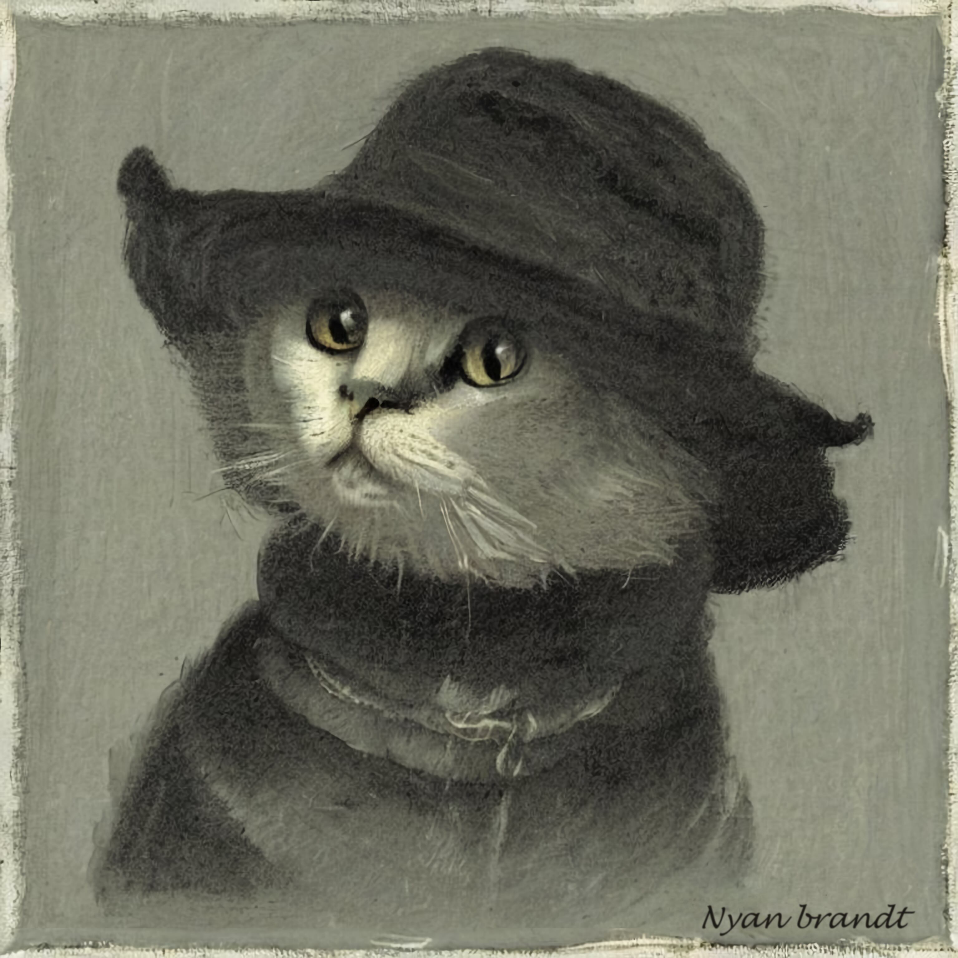 可愛い帽子をかぶっている猫のデザインが可愛らしいニャンブラントシリーズのTシャツ。