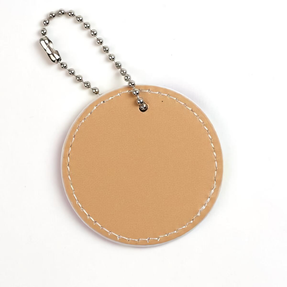 柔らかい触り心地が特徴のPU製レザー合皮を使用した高級感のある丸形キーホルダー!