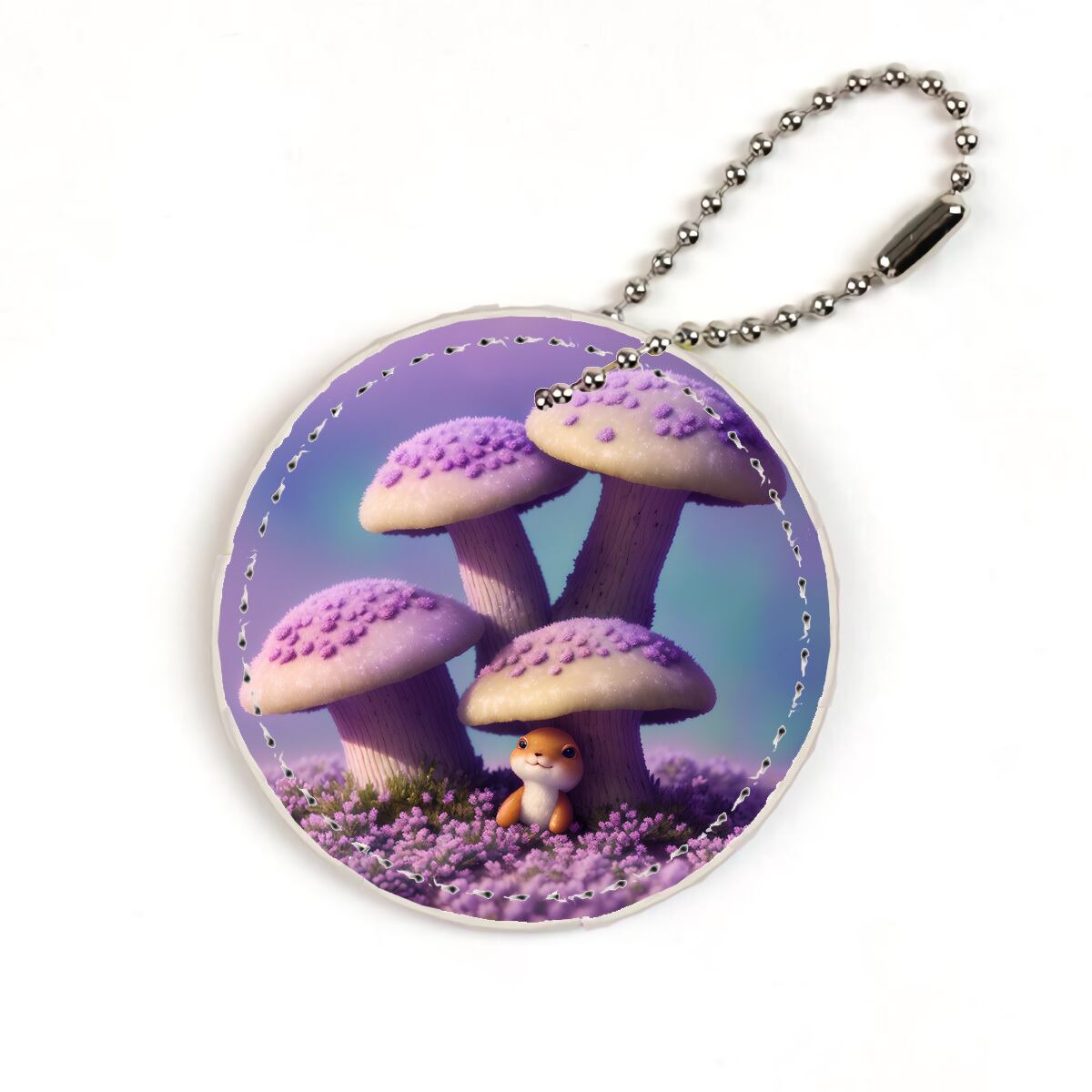 不思議なきのこの世界 No.2 PUレザー 丸形キーホルダー 【Designed by SnowDrop】【送料無料】