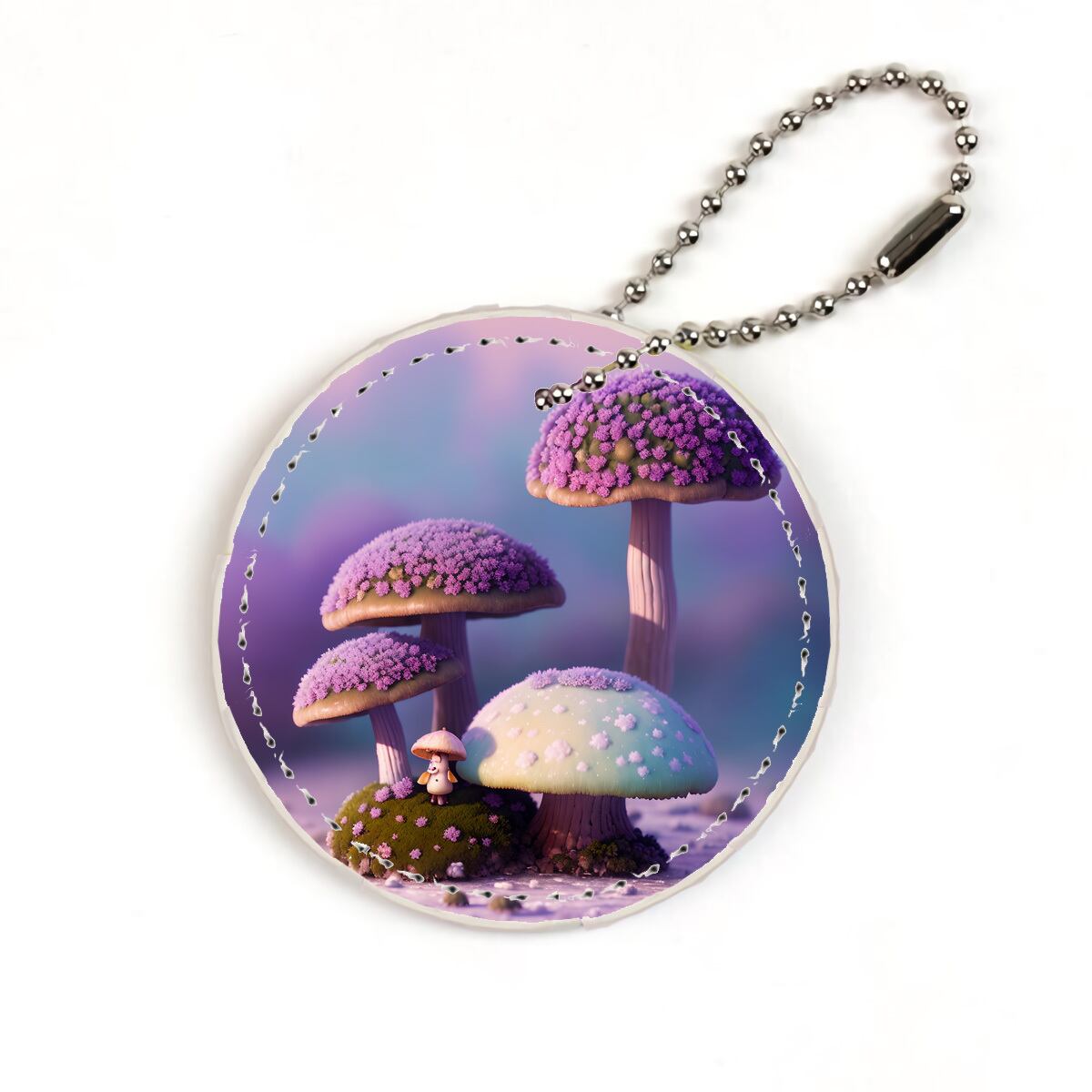 不思議なきのこの世界 No.4 PUレザー 丸形キーホルダー 【Designed by SnowDrop】【送料無料】