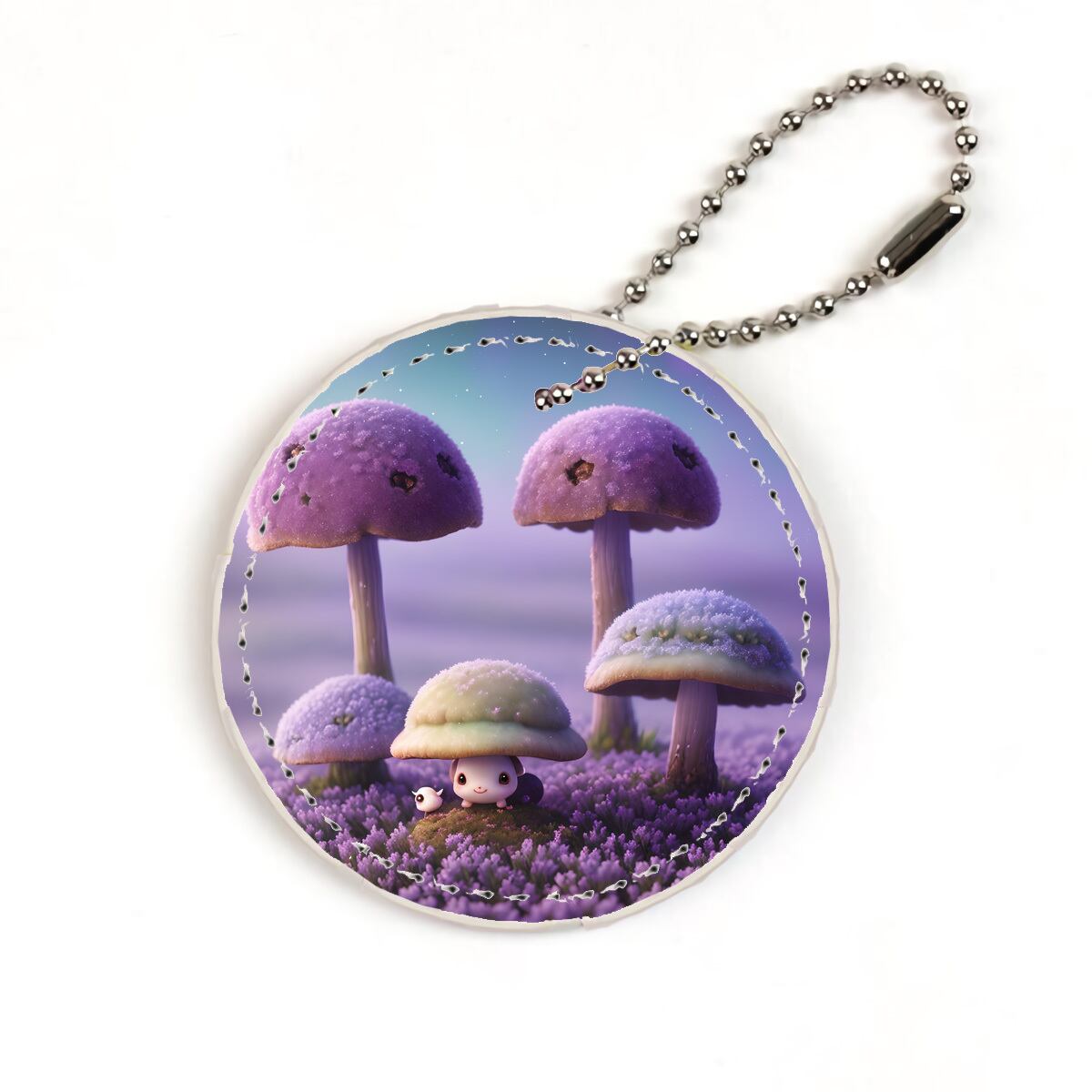 不思議なきのこの世界 No.5 PUレザー 丸形キーホルダー 【Designed by SnowDrop】【送料無料】