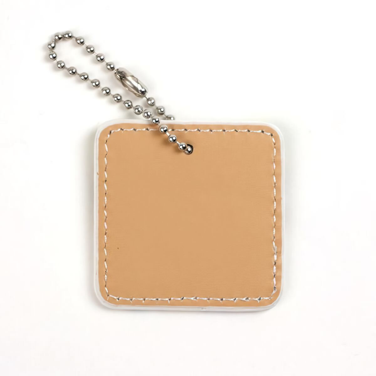 柔らかい触り心地が特徴のPU製レザー合皮を使用した高級感のある正方形キーホルダー!