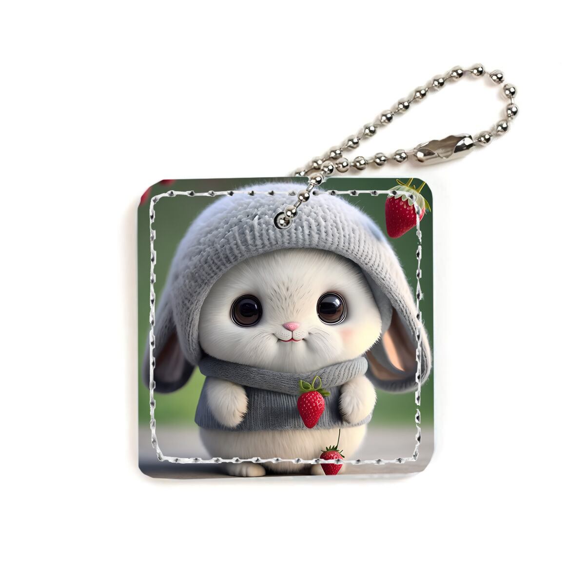 ストロベリーうさたん No.6 PUレザー 正方形キーホルダー 【Designed by SnowDrop】【送料無料】