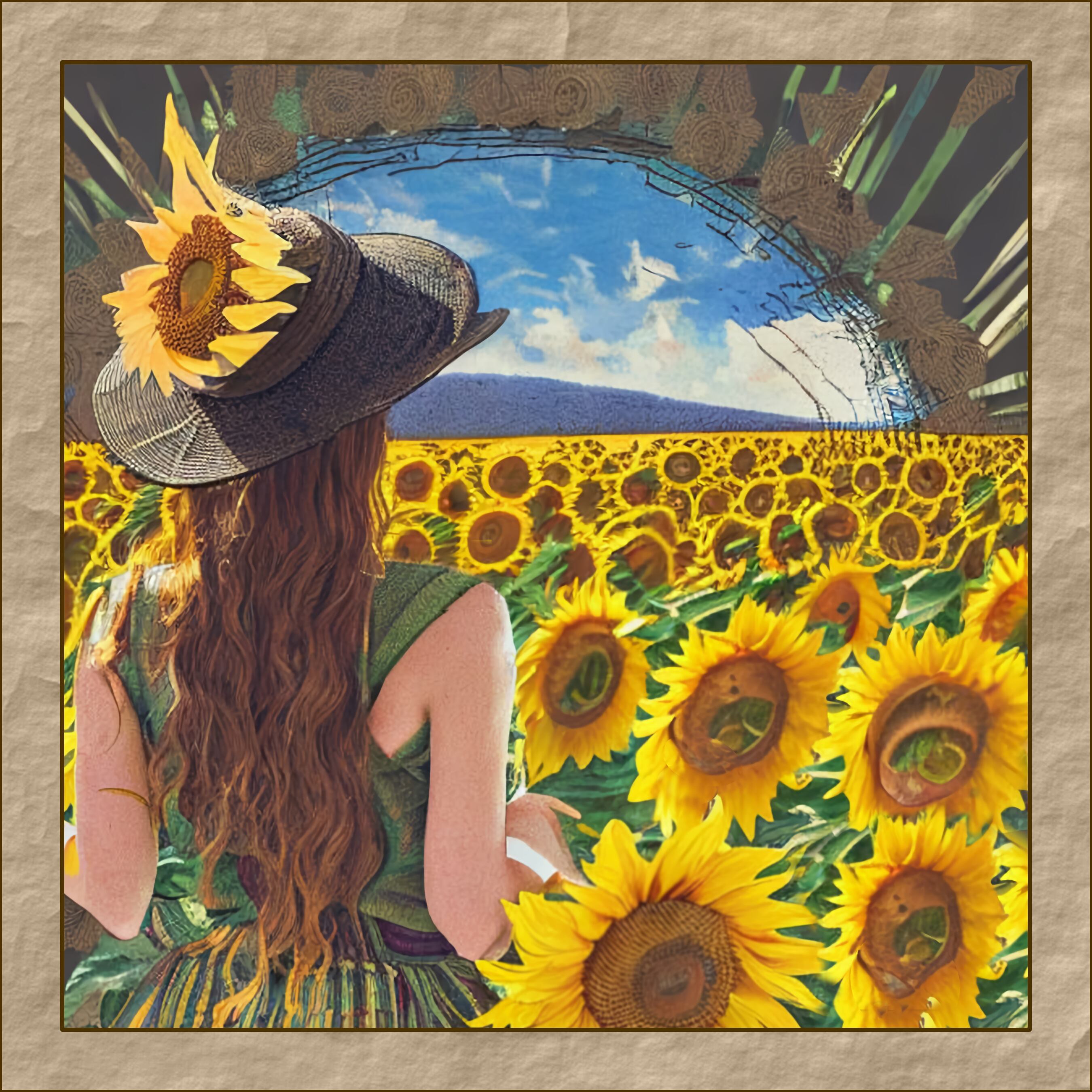 美しいひまわりの花畑に身を置く可憐な少女。