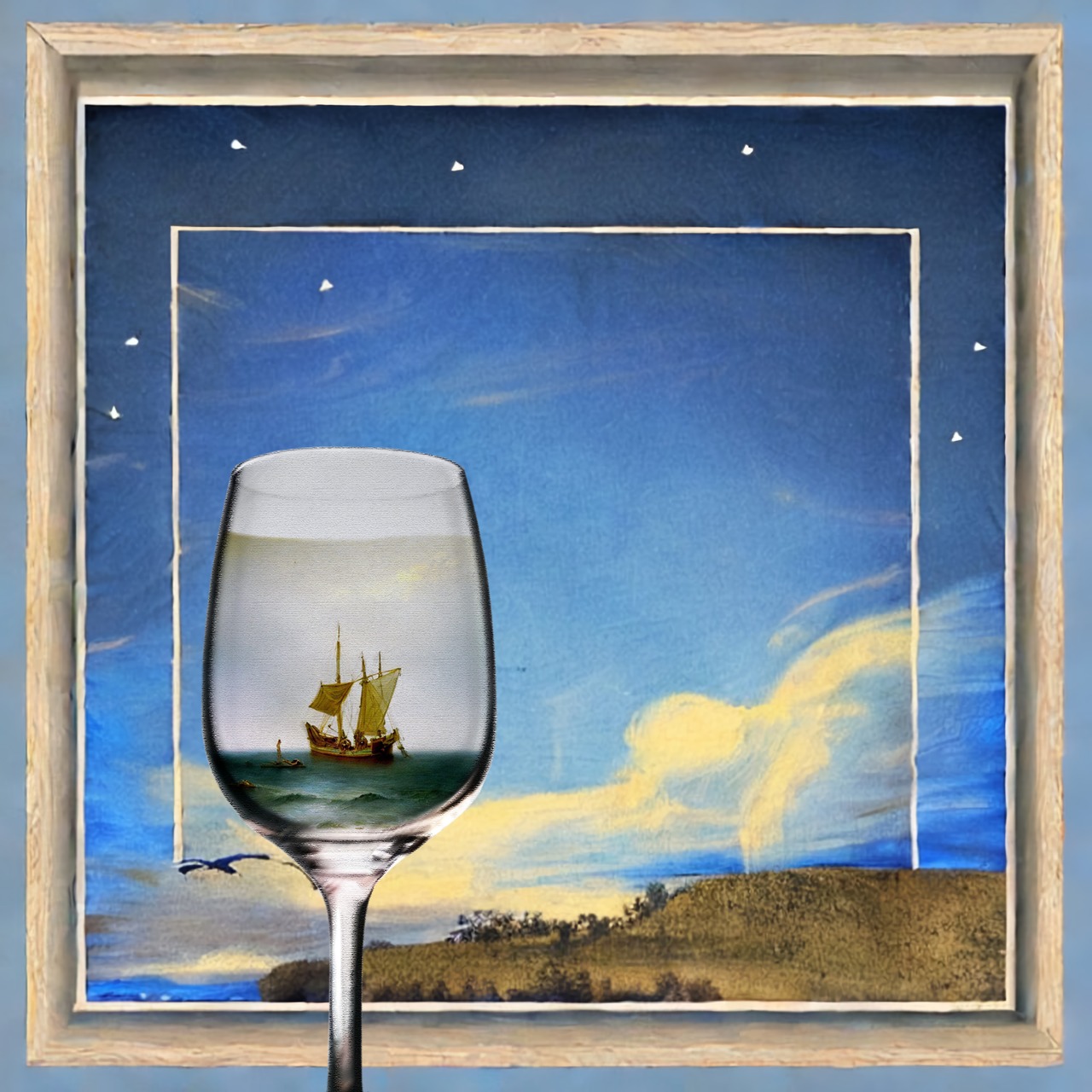 中世を思わせるような帆船がグラスの中を航海しているかと思えば、