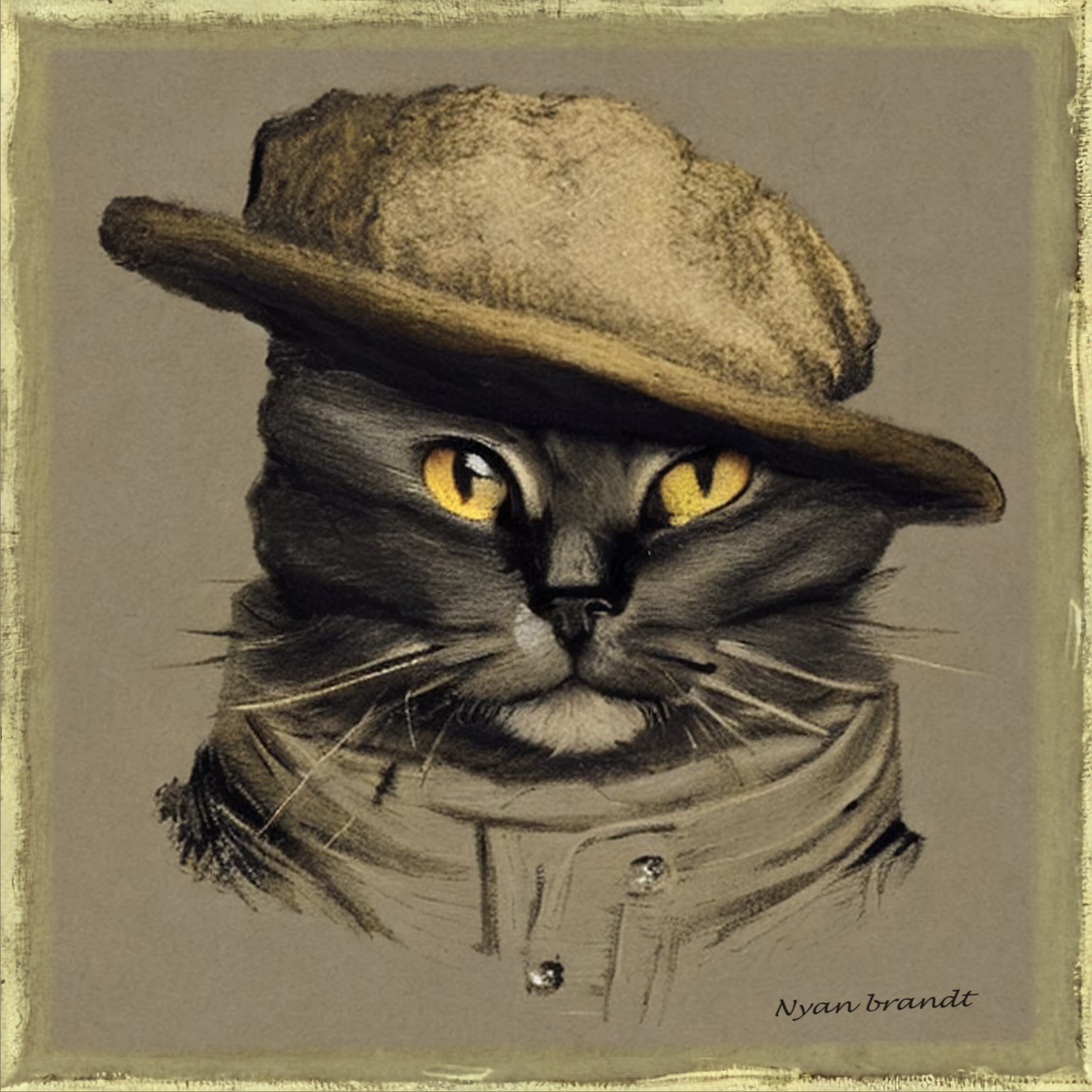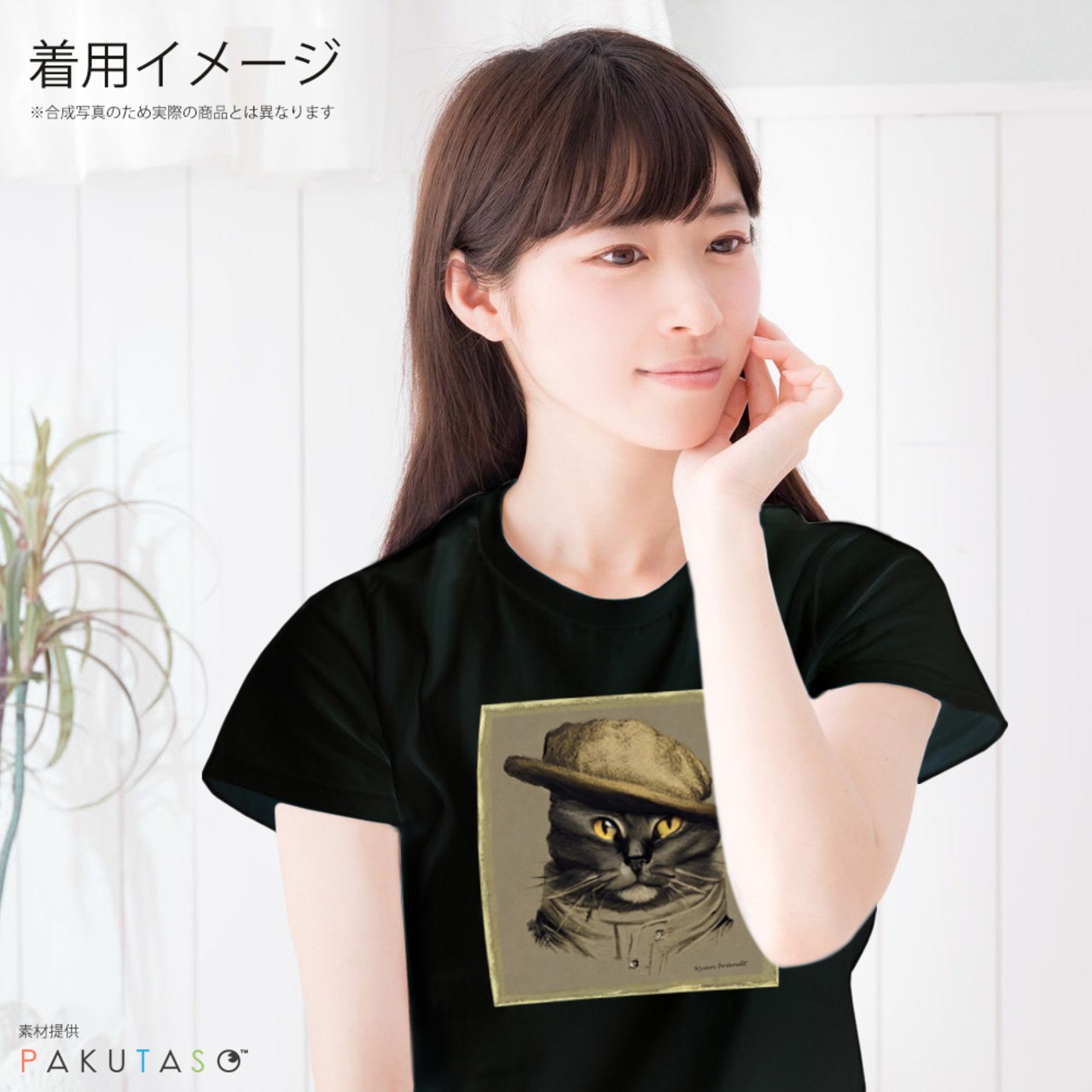 探偵風の帽子をかぶっている猫のデザインが愛らしいニャンブラントシリーズのTシャツ。