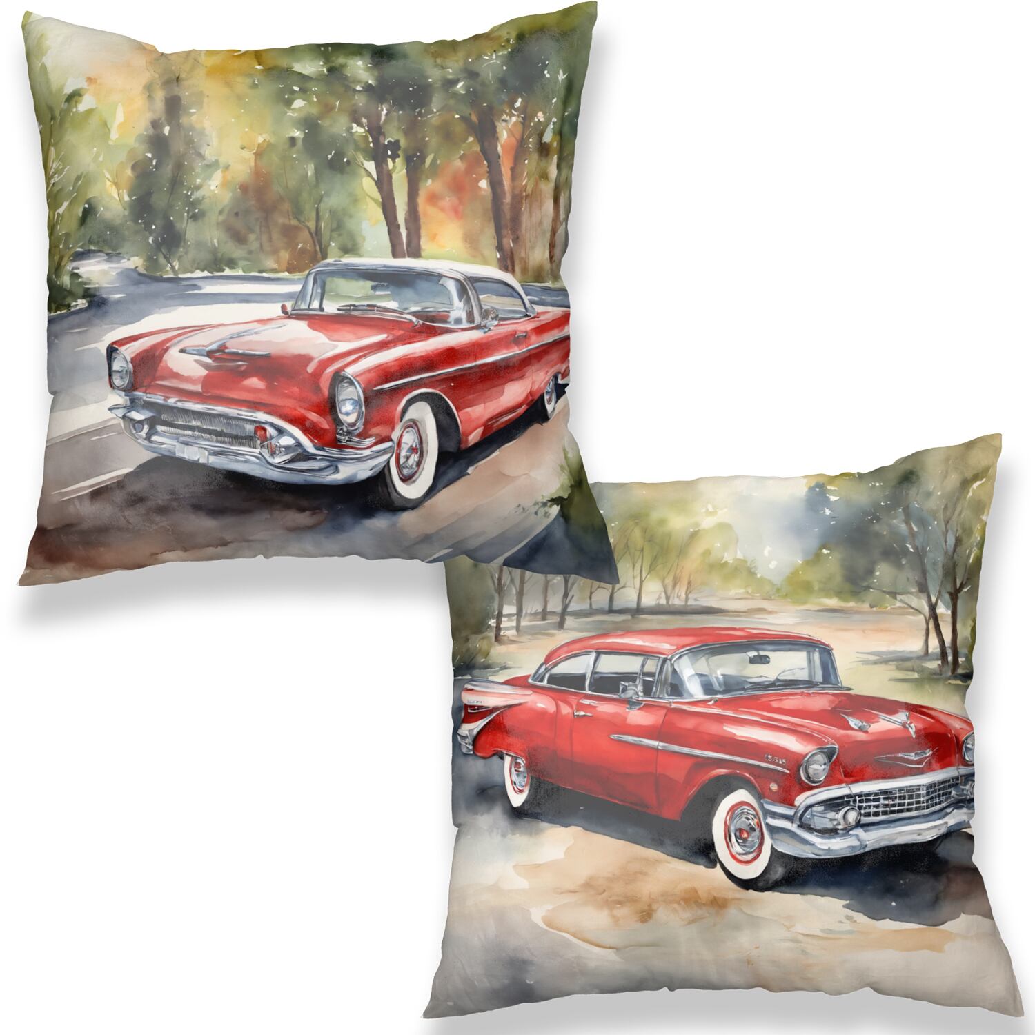 水彩風のタッチで描かれたクラシックカーのクッションカバーになります。