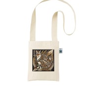 国際フェアトレード認証ラベル付きの地球にやさしいサコッシュ。