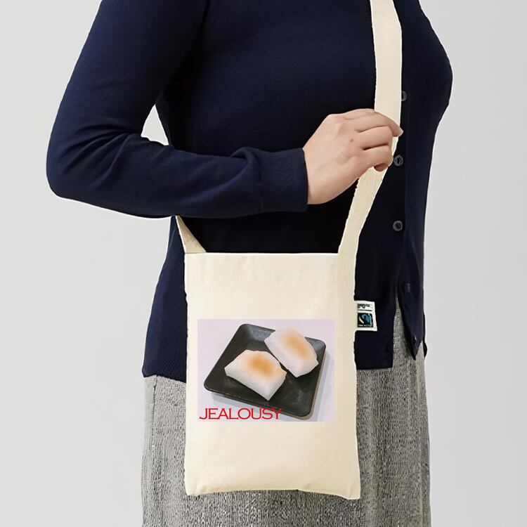国際フェアトレード認証ラベル付きの地球にやさしいサコッシュ。